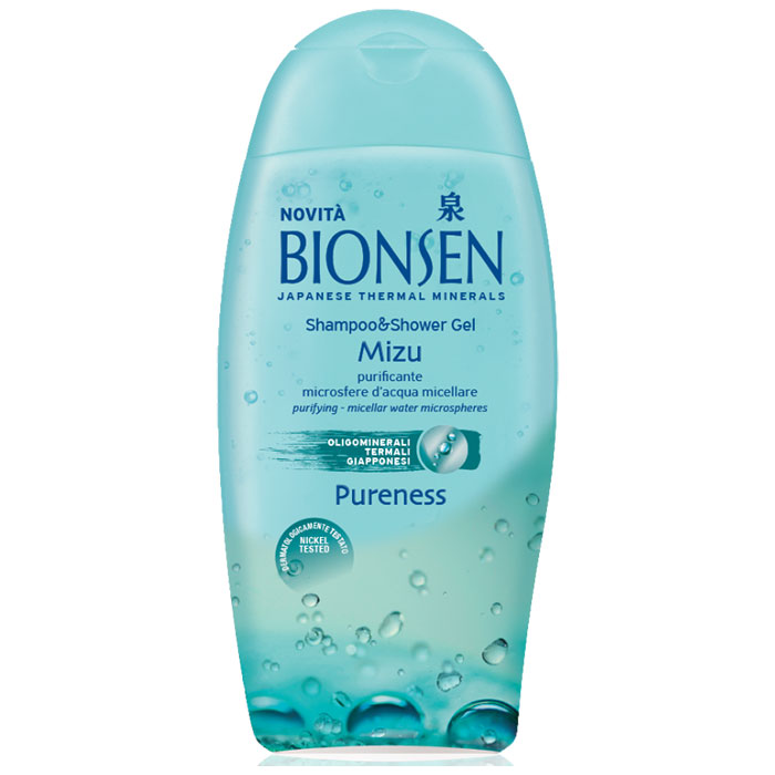 Lasciati coinvolgere in un rituale millenario e rigenerati nelle calde acque delle sorgenti termali giapponesi con Bionsen Shampoo&Shower Gel Mizu Pureness, microsfere di acqua miceIlare che aiutano ad eliminare le impurità lasciando i capelli luminosi e la pelle fresca e morbida.