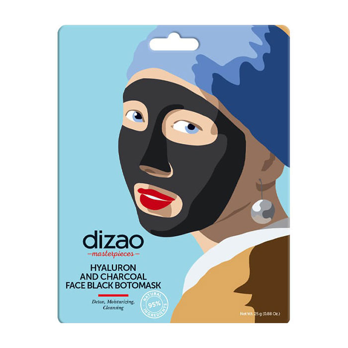 La Boto-mask Detox Dizao è interamente fatta in fibra di carbone e poi intrisa di principi attivi quali acido ialuronico, polvere di carbone attivo astringente e purificante, complesso peptidico ed estratti vegetali bio idratanti.