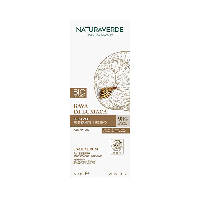 Il Siero Viso Naturaverde Bio Bava di Lumaca rigenerante intensivo con il 10% di bava di lumaca pura aiuta a mantenere la pelle del viso protetta ed idratata contrastando i segni dell’invecchiamento. La sua formula, arricchita con acido Ialuronico, ridona elasticità alle pelli mature, e rende il Siero Viso alla Bava di Lumaca un aiuto indispensabile contro gli effetti aggressivi degli agenti atmosferici. La pelle del viso risulterà elastica, illuminata oltre che piacevolmente profumata.