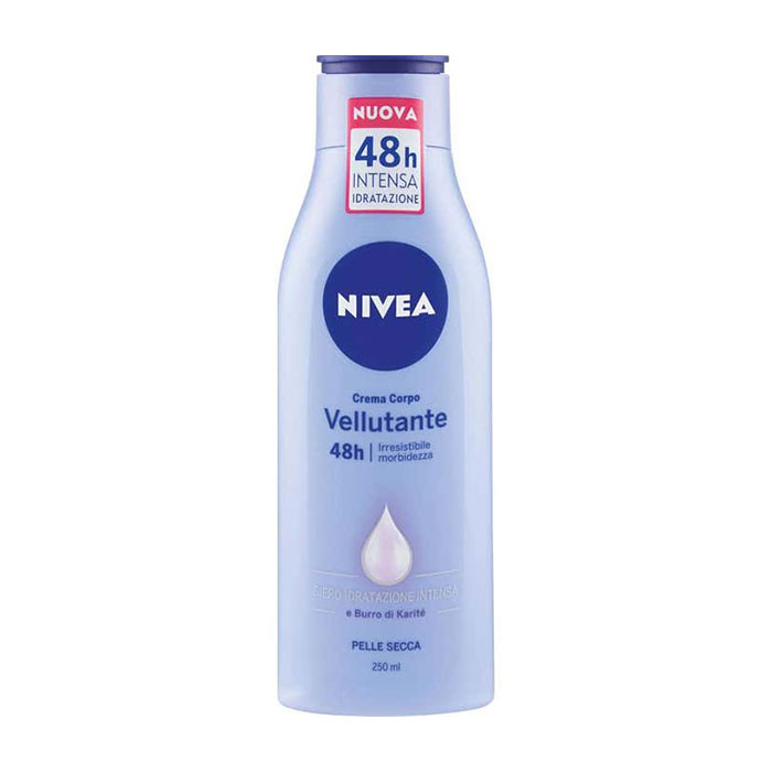 Prova NIVEA Crema Corpo Vellutante, per una sensazione di morbidezza e idratazione. La sua formula arricchita con prezioso Burro di Karité idrata la pelle mantenendola morbida e liscia a lungo, e ne rinforza le barriere naturali per prevenire la disidratazione.